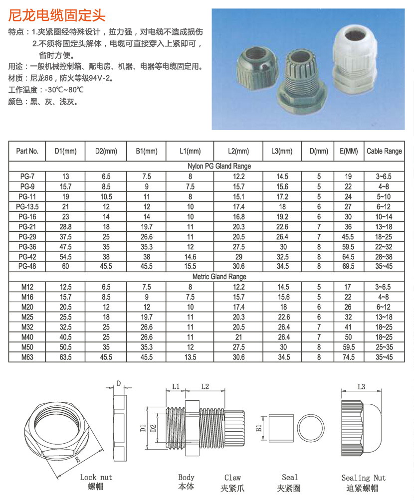 尼龙电缆固定头