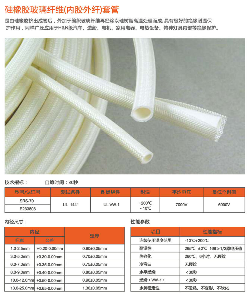 硅橡胶玻璃纤维(内胶外纤)