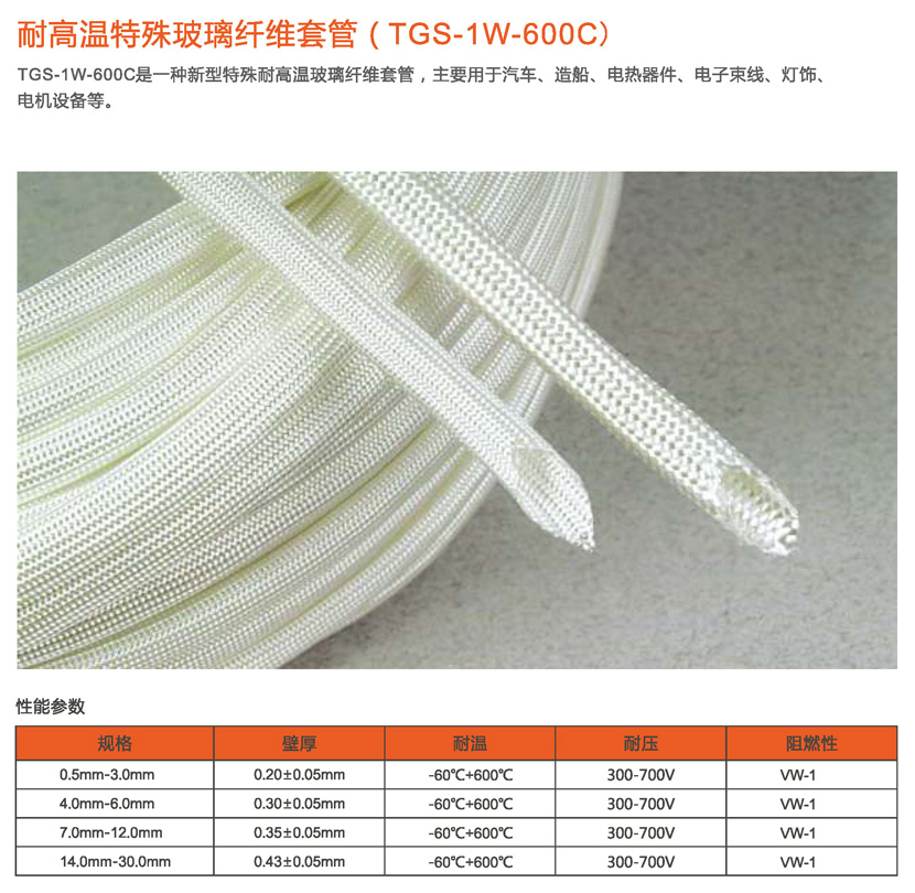 耐高温特殊玻璃纤维套管(TG